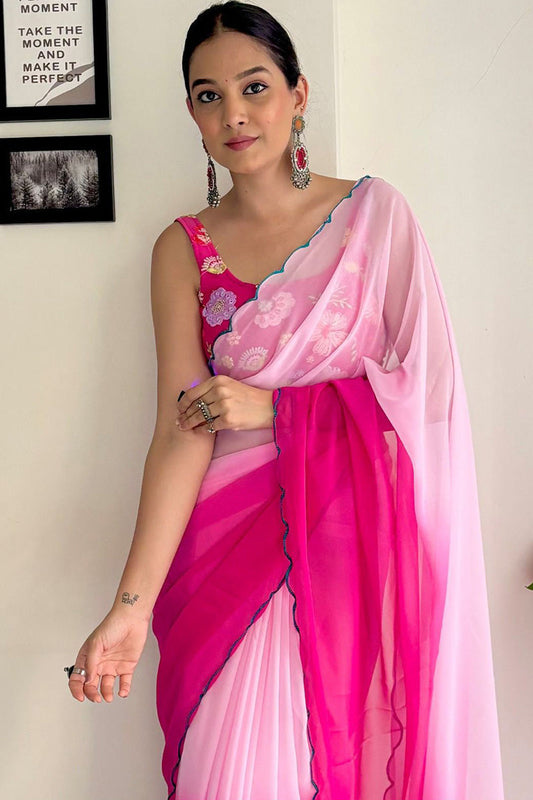Mellifluous 1-Minute Ready To Wear Dark Pink Georgette Saree