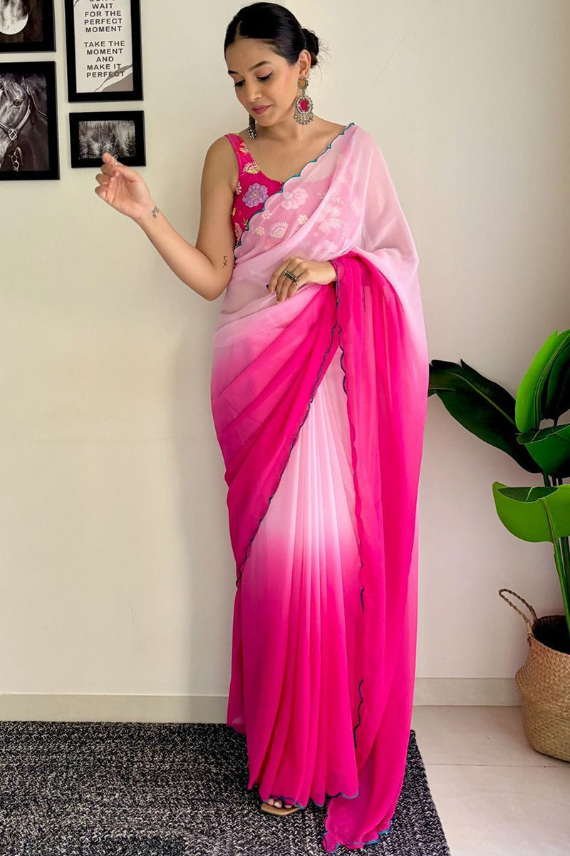 Mellifluous 1-Minute Ready To Wear Dark Pink Georgette Saree